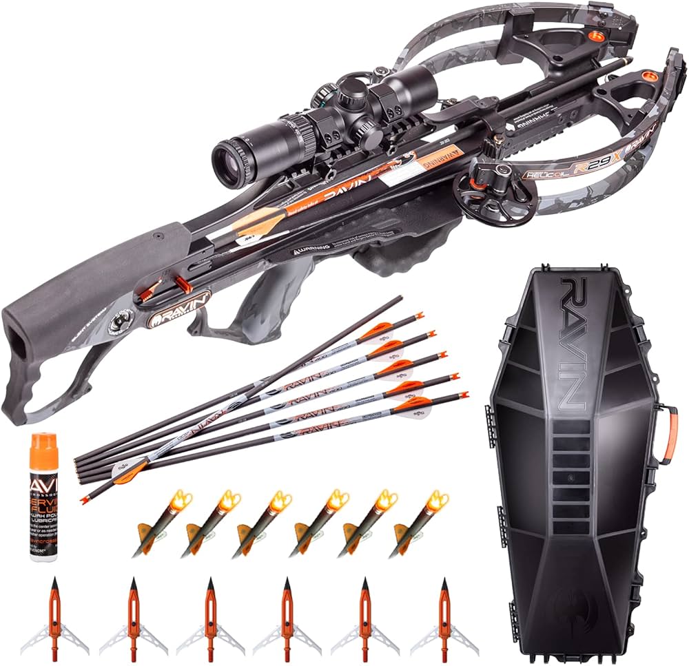 Amazon Com Ravin Crossbows R29x Sniper Crossbow Package R041 With Helicoil Technology And Silent Cocking System Predator Dusk Camo Sports Outdoors